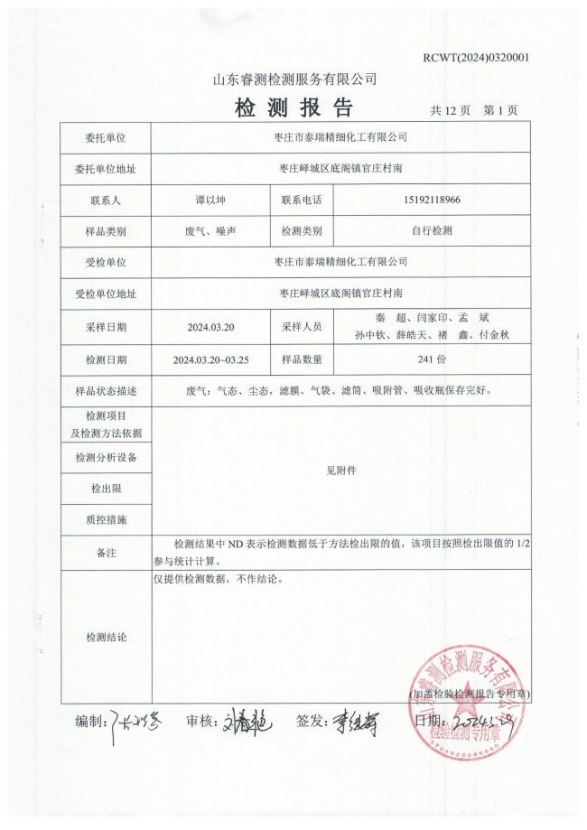 2024年第1季度(3月份)檢測(cè)報(bào)告