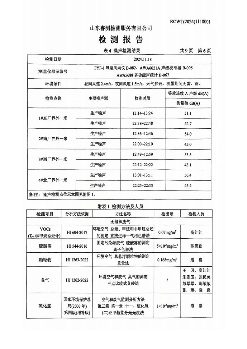 第四季度廢氣、噪音檢測(cè)報(bào)告