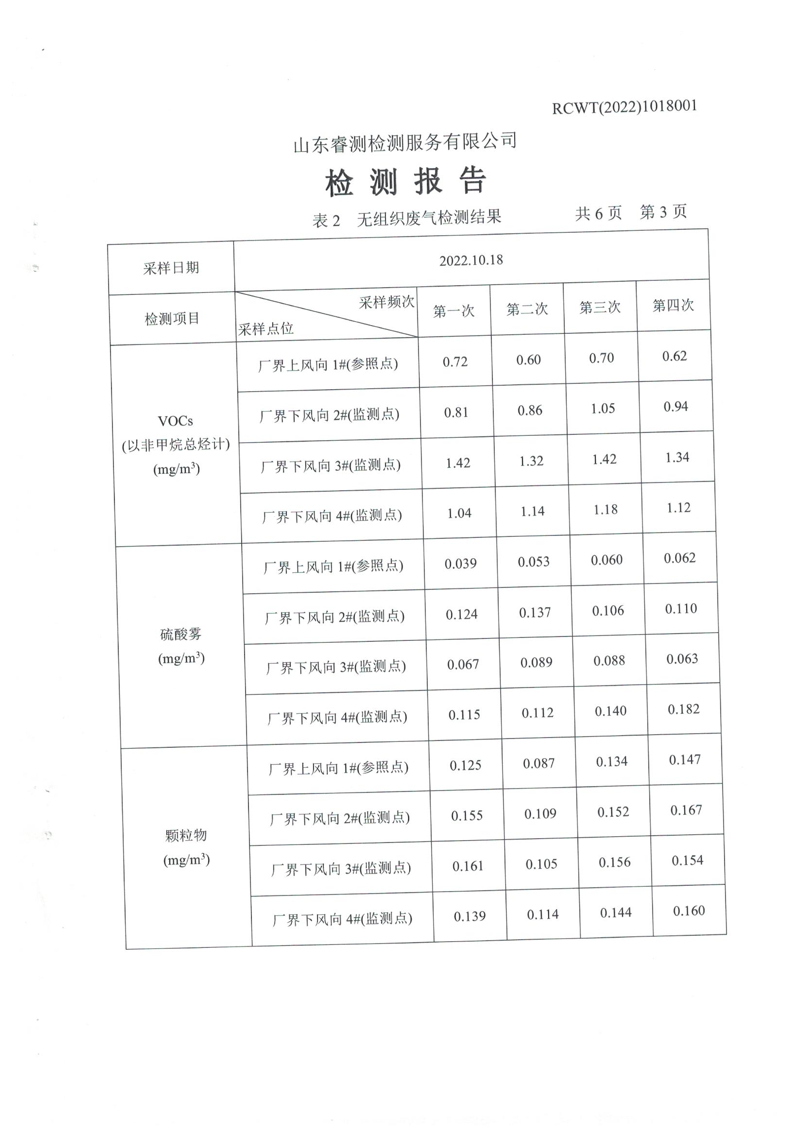 2022年10月份自行檢測(cè)報(bào)告