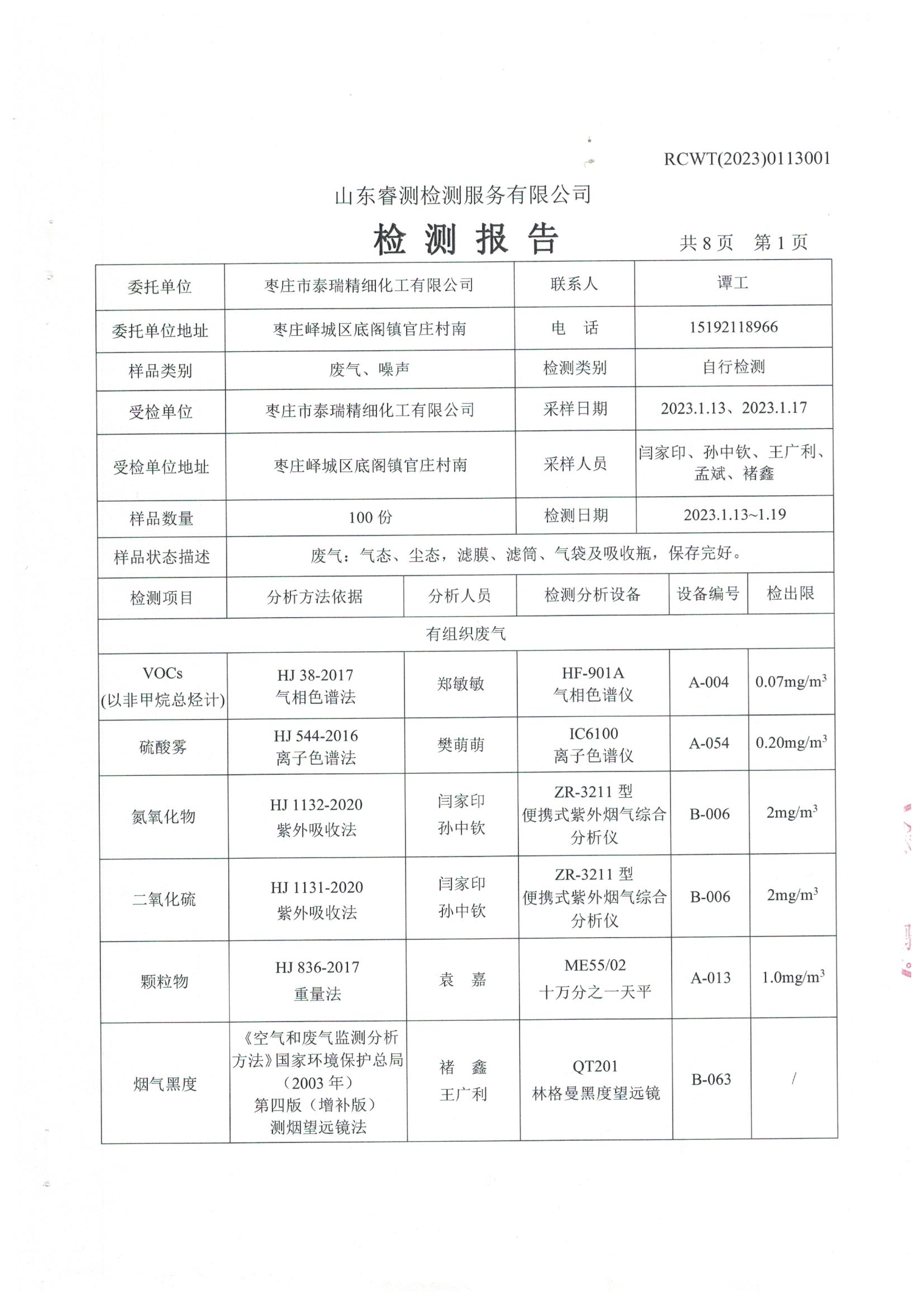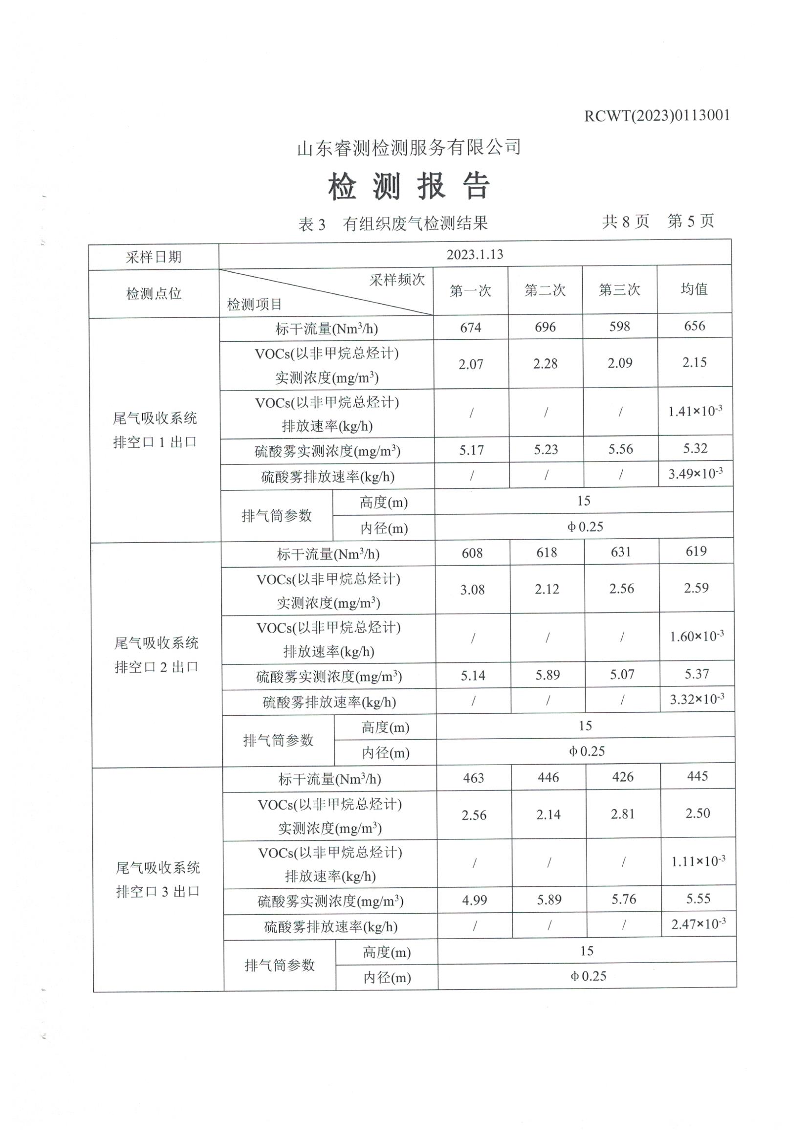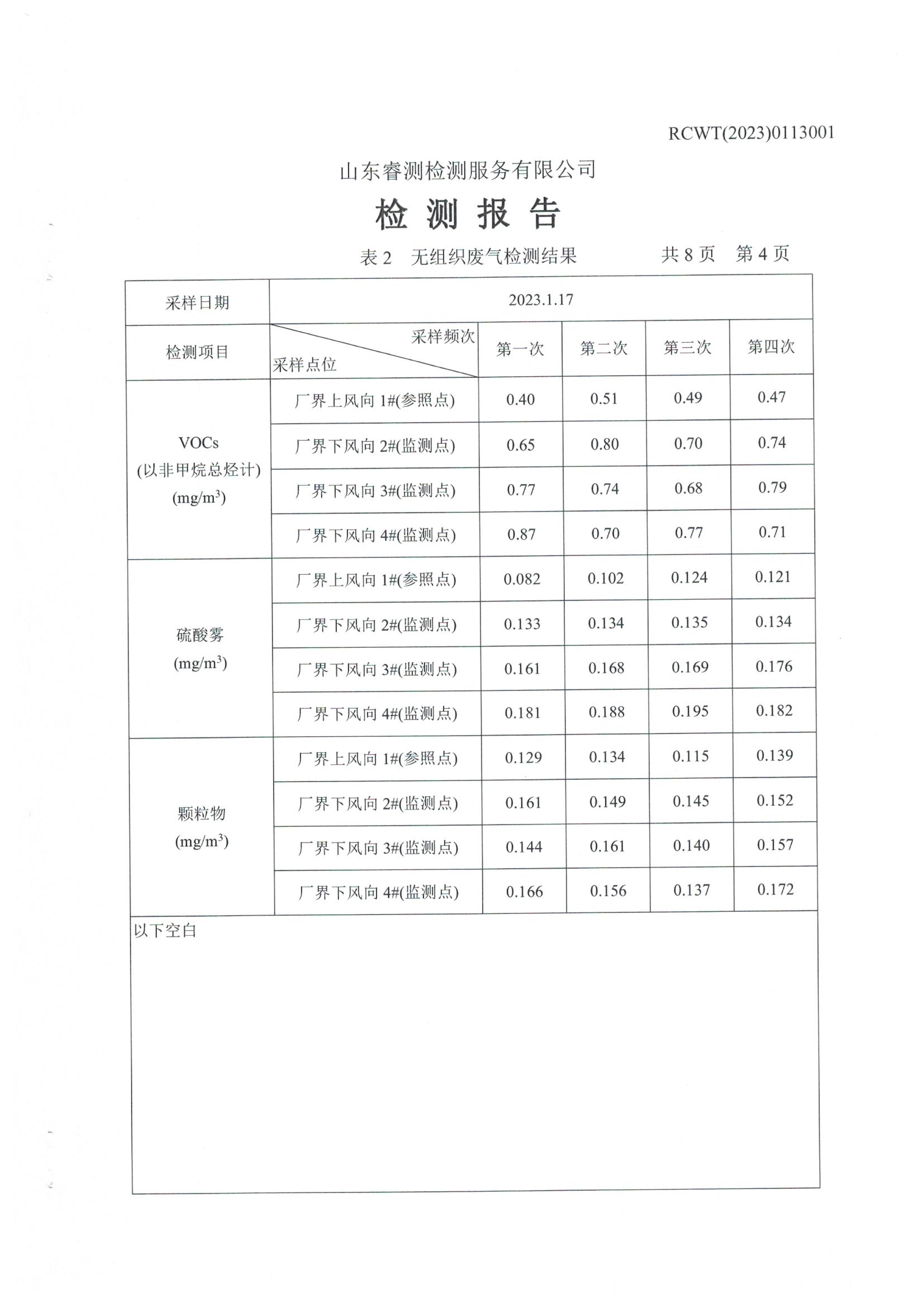 2023年第1季度檢測報告